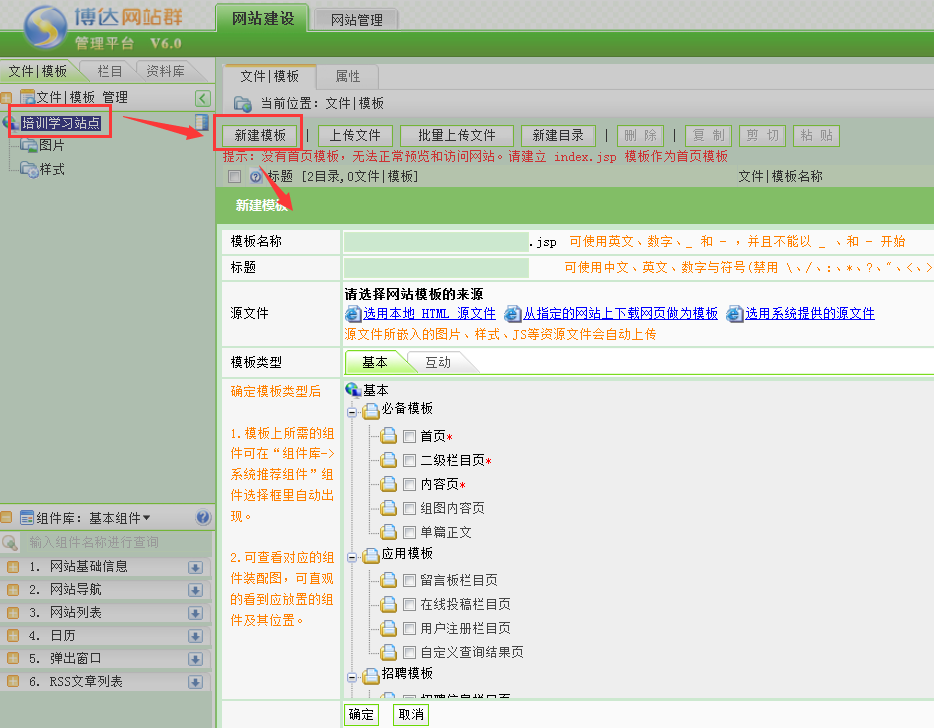 1、首先建立一个空的站点。点击站点名称—>新建模板