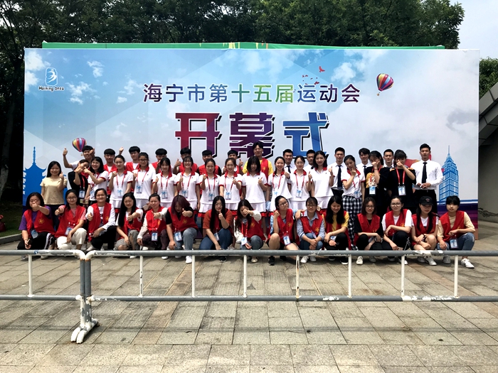 活动五:5月13日,组织50余名志愿者全程参与海宁市第十五届运动会旗手、引导员和志愿者服务工作。志愿者们饱满的精神状态和充满青春朝气的笑容给大家留下了深刻的印象,在志愿者们的辛勤努力下,开幕式取得了圆满的成功。通过此次活动,弘扬了“奉献、友爱、互助、进步”的志愿服务精神,展现了我院学生有理想、有追求,有担当、有作为,有品质、有修养的良好的精神面貌。