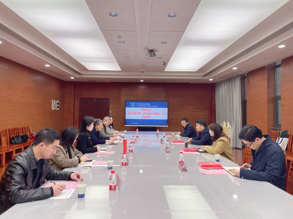 3月24日下午,海宁市委常委、宣传部部长周国强一行来我校海宁校区考察调研。校党委副书记周增逵陪同调研。海宁市委宣传部、社科联,学校海宁校区综合办、宣传统战部、学生处、保卫处等相关部门负责人参加调研。