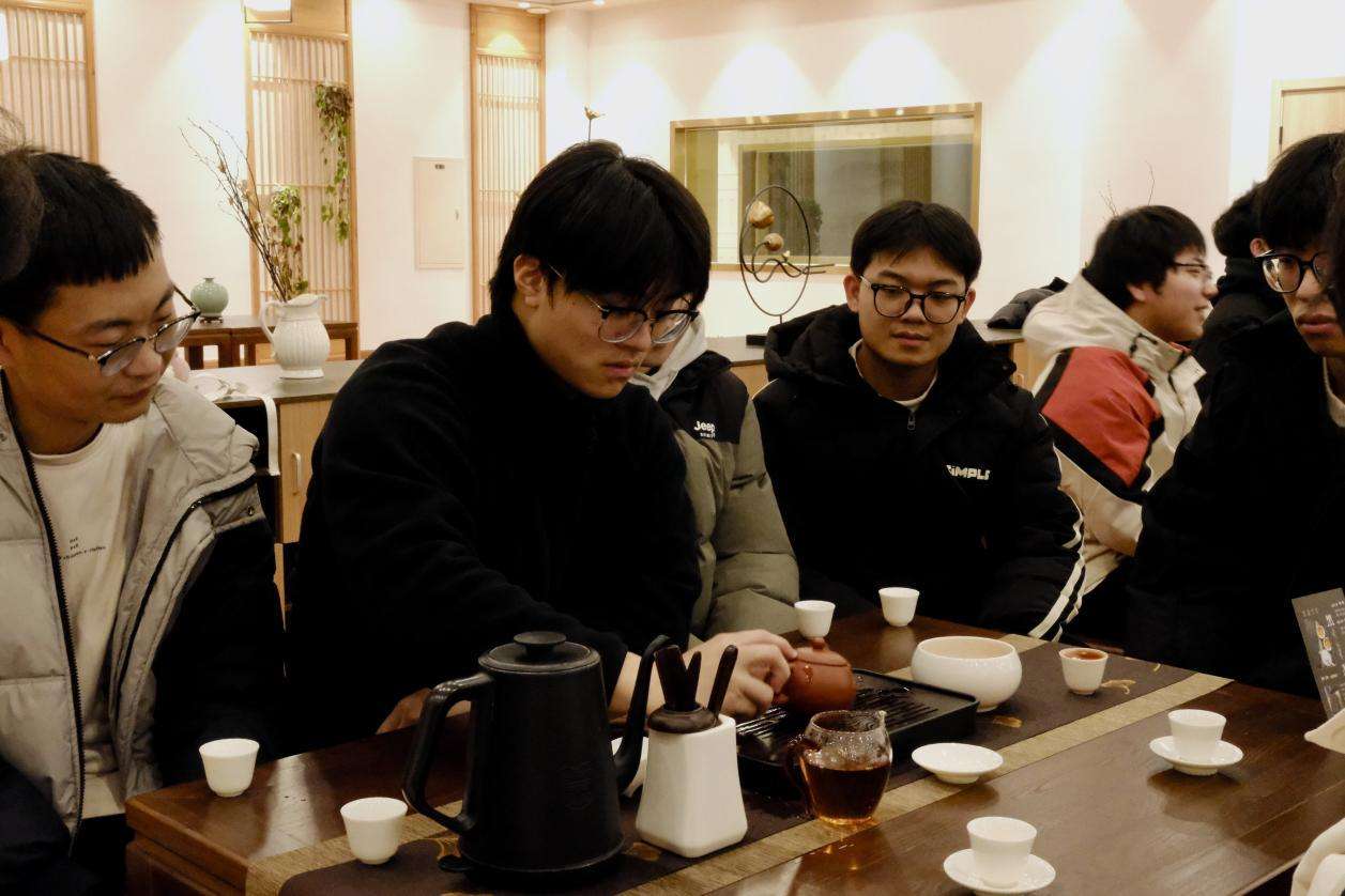 互动环节中,话题从茶味的浓淡回甘,延伸至生活的烟火意趣;从制茶工艺的传承创新,畅谈至传统文化的当代新生。一盏茶的距离,拉近了师生间的情谊,也让年轻的心与古老的文化悄然贴近。茶香入喉,清润回甘;文脉入心,暖意绵长。这个被茶意浸润的夜晚,年轻的心灵与古老的文明温柔相拥、和谐共生。