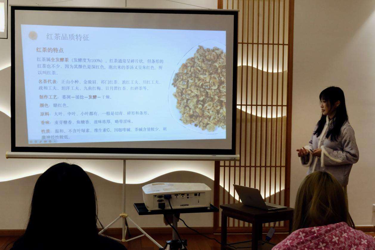 茶会伊始,便以中国茶叶分类体系为引,徐睿寅老师深入浅出地讲解了绿茶、红茶、黄茶、乌龙茶、白茶、黑茶六大茶类的工艺精髓与文化内核。从发酵程度的细微差异,到风味体系的鲜明分野,从制茶工序的匠心传承,到地域风土的人文印记,老师的讲解层层递进、娓娓道来。在其引导下,学生们不仅厘清了各类茶叶的知识脉络,更沉浸式开启了一场茶香漫溯的品鉴之旅,逐一审味六款代表性茶品的独特气质: