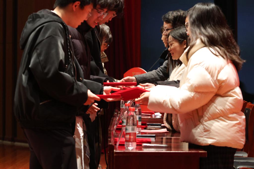 表彰环节中,学院对过去一年中表现突出的先进集体和优秀个人进行集中表彰。学院始终秉持 “砺匠育人” 的初心,希望在座学生能以榜样为灯,照亮个人的奋进之路,让比学赶超的氛围浸润校园,共促学院蓬勃发展。