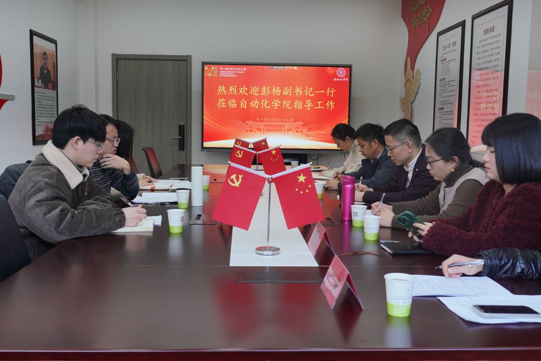 12月26日,校党委副书记彭杨一行莅临自动化学院,调研指导学院党建、学生思政及安全稳定等各项工作。学院党委书记刘哲纬、党委副书记方惠玲,学校相关职能部门负责人及学院相关工作辅导员参加调研座谈会。