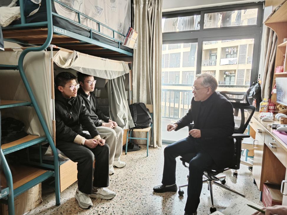 周增逵分别走访24级和25级新生的寝室,亲切地和同学们交谈,询问同学们寒假生活、返校适应情况,详细了解了同学们学习、生活等方面的情况。他向同学们提出希望,一是尽快“归心归位”,找准奋斗方向,正值“十五五”规划的关键节点,希望大家胸怀大局,将个人成长的小目标主动融入服务国家发展的大蓝图;二是扎实学好专业知识,清醒认识社会变革,面对日新月异的时代,必须时刻保持危机意识,不能满足于书本理论,更要在实践中提升解决复杂问题的能力,练就适应社会发展的核心竞争力;三是守牢安全底线,为梦想提供坚实保障,人身安全、财产安全和网络安全都是学习与生活的基础,只有守住安全底线,保持身心健康,才能更好地追逐梦想。