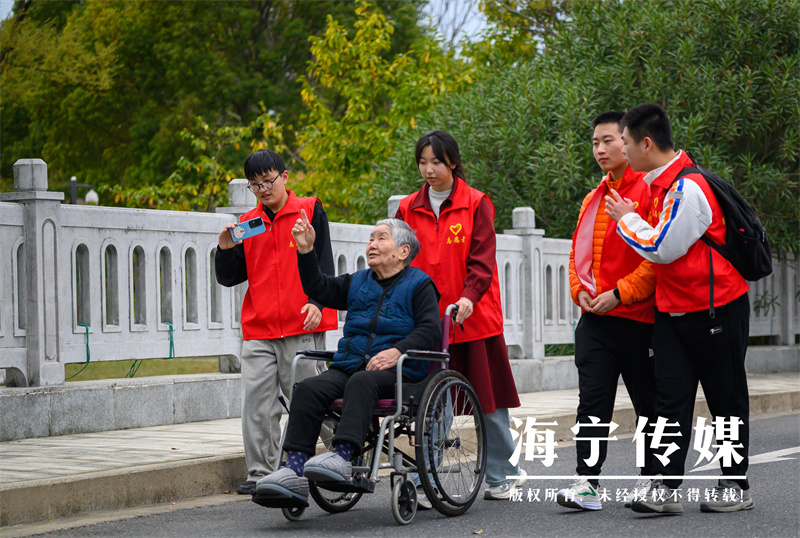 一路上,志愿者们变身“导游”,为老人们介绍学校的发展历程、特色专业和校园文化。