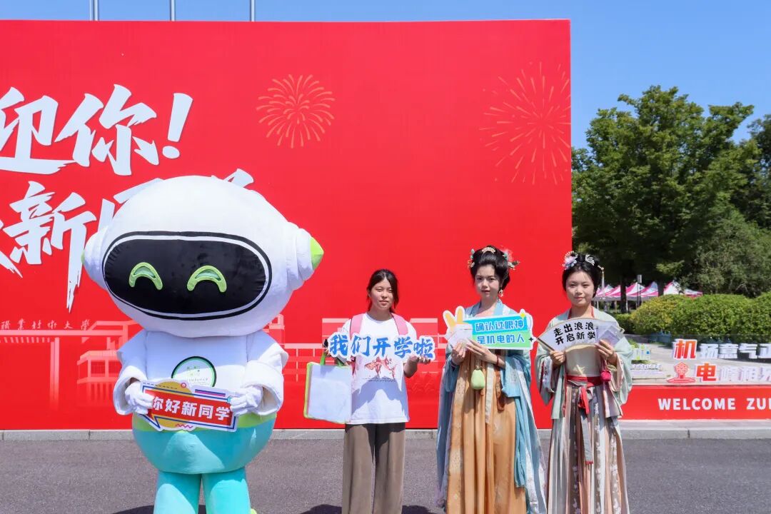 今年的迎新现场融入了丰富的人工智能元素:机器人正挥舞手臂,迎接新生们的到来。机器狗穿梭在人群中,为新生托运行李、送上饮用水。