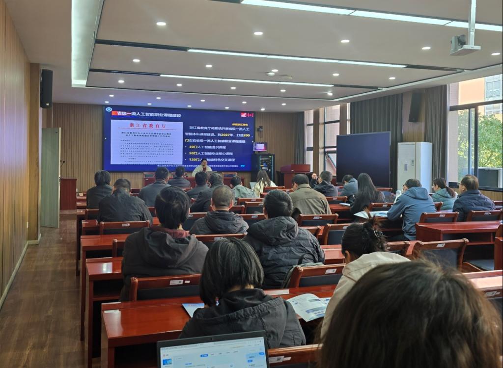 随着新一轮科技革命和产业革命深入推进,发展数字教育、积极探索人工智能在教育教学中的深度应用已成大势所趋。为促进智能技术与教育教学深度融合,进一步提升数字化课程建设质量,11月19日下午,自动化学院邀请超星课程服务负责人张真瑜于海宁校区18-201举办《AI赋能智慧课程建设与教学模式创新的实践探索》讲座。