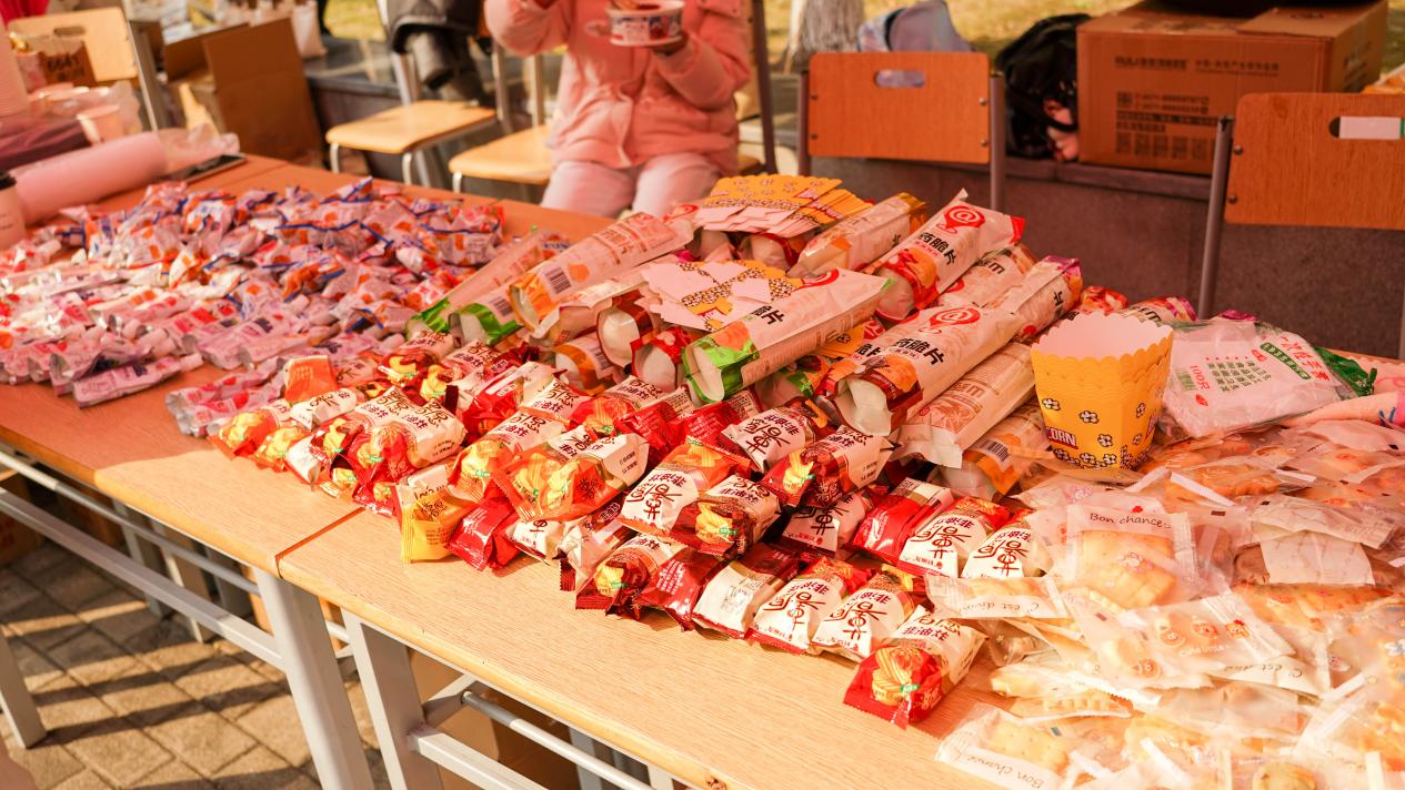 “零食区”与趣味饮品站化身嘉年华的“能量补给站”。同学们凭游戏赢取的“美食券”兑换一份小吃或零食,在游玩间隙分享乐趣、交流心得。轻松自在的分享场景,成为连接彼此、传递温暖的社区微缩影。