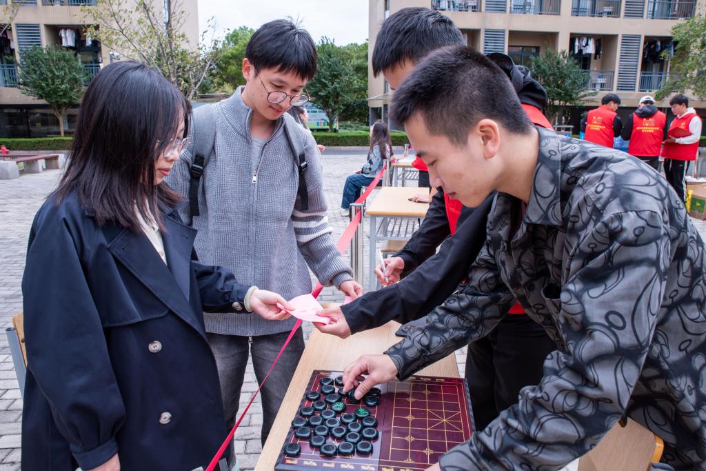 自选项目同样亮眼,趣味比拼间尽显教职工活力与默契。“飞花令・成语接龙”组,老师们围坐从“桃李芬芳”开接,有人卡壳时,同事悄悄提示的暖心瞬间不断;“将军令・棋遇将星”前,大家屏息抽棋,抽到“将”“帅”的欢呼感染全场;“心有灵犀・你演我猜”成焦点,“演”者手舞足蹈还原校园场景,“猜”者顿悟的惊喜引喝彩,校园默契在笑声中升温。