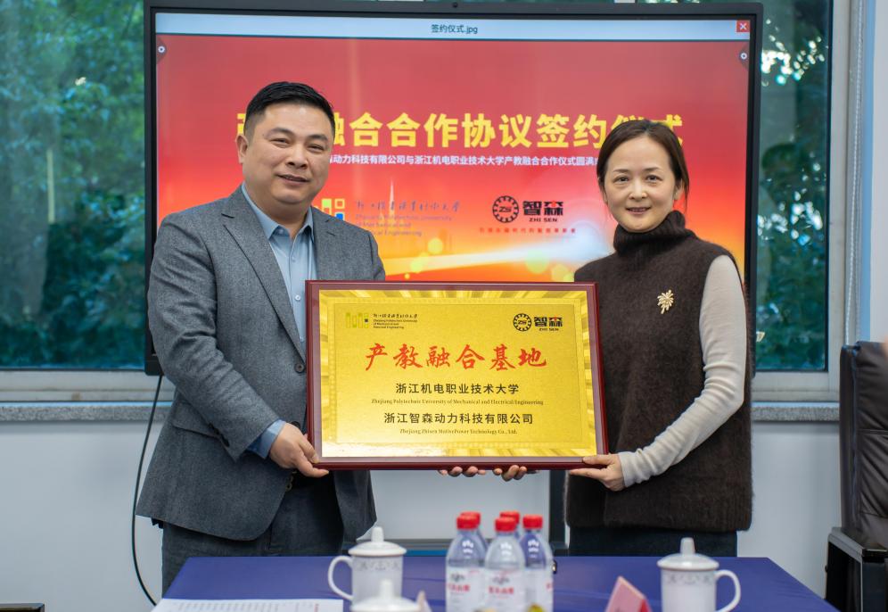 12月25日,国际教育学院党委书记高水琴一行赴浙江智森动力科技有限公司,举行产教融合合作签约仪式。机电类专业国家级实验教学示范中心(浙江大学)主任沈建新教授,浙江省电机动力学会秘书长阮建国,浙江省电机行业协会秘书长陆柏生,嵊州市科学技术协会主席王科英,嵊州市电机协会秘书长范兵,副秘书长、学校省级产业教授顾美华,嵊州市科技局副局长周邢来,嵊州市经济和信息化局、浦口街道相关领导出席会议。浙江智森动力科技有限公司总经理过剑波热情接待。此次仪式的举行,标志着双方正式开启校地企协同育人、共促产业升级的全新合作篇章。 仪式上,高水琴书记指出,职业教育的生命力在于与产业同频共振,学校始终坚守“服务浙江制造、引领职业教育”的办学定位,在新能源电机、智能控制等领域积累了深厚的教学与科研基础。此次与智森动力的合作,是学校深化产教融合、推动教育链、人才链与产业链、创新链深度融合的务实之举,更是校地企携手响应新质生产力培育要求的生动实践。学校将充分发挥师资、科研及人才培养优势,与企业精准对接需求,为产业升级注入智力动能。 过剑波总经理对学校一行的到来表示热烈欢迎,并介绍了智森动力的发展概况与产业布局。他表示,公司深耕新能源动力系统核心领域,在轴向磁通电机、低空飞行器动力系统、人形机器人动力部件等前沿方向具有明确的发展规划,当前正处于向高端化、智能化转型的关键阶段,亟需高素质技术技能人才与科研创新支撑。浙江机电在相关领域的学科优势与人才培养特色,与企业发展需求高度契合,期待通过此次合作,实现资源互补、互利共赢,共同推动电机产业高质量发展。 随后,双方代表现场签署校企合作协议,并举行产教融合基地授牌仪式。双方将聚焦新能源电机、轴向磁通电机等新质生产力项目,组建校企合作团队,把企业真实生产需求转化为教学内容,同时推动科研成果快速落地转化,助力电机产业向高端化、智能化转型。 签约授牌仪式结束后,在过剑波总经理的陪同下,与会人员深入企业生产车间,实地参观了企业的生产车间和研发实验室,详细了解企业生产工艺、技术研发进展及人才需求情况,为学校后续精准对接合作内容奠定了坚实基础。 此次产教融合合作的达成,将有效整合校企双方资源优势,构建“校企协同、产教互融”的育人与创新体系。下一步,双方将以合作基地为依托,加快推进具体合作项目落地,为浙江电机产业转型升级培育更多高素质技术技能人才,为新质生产力发展贡献校地企协同力量。