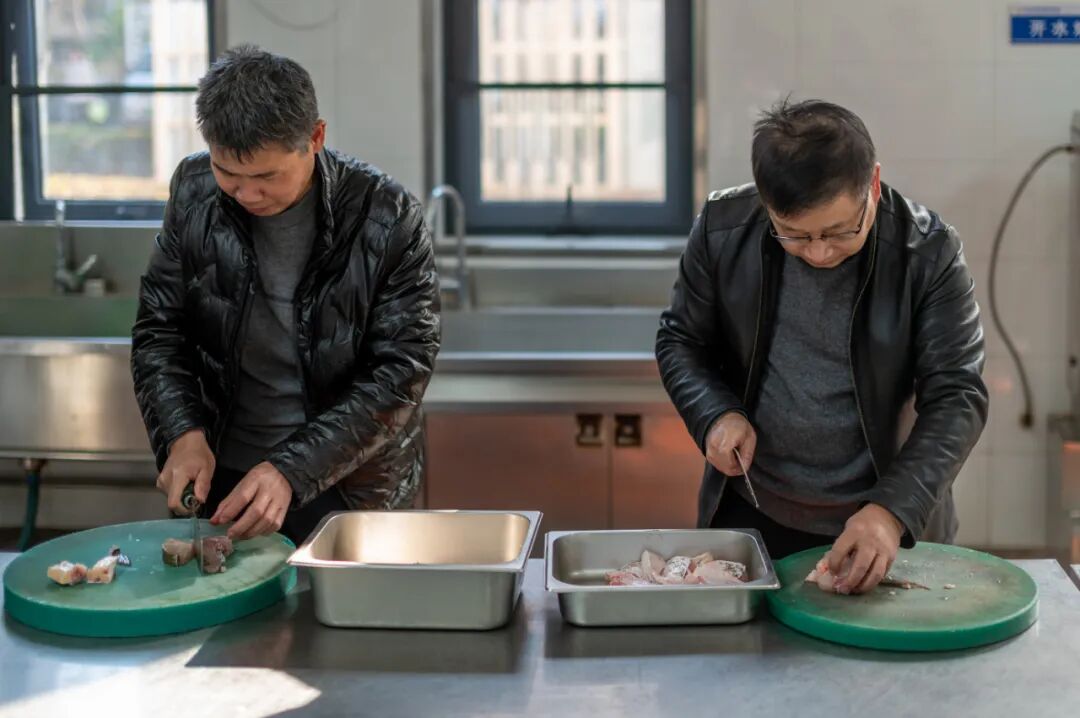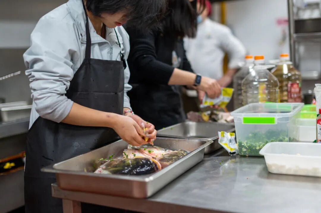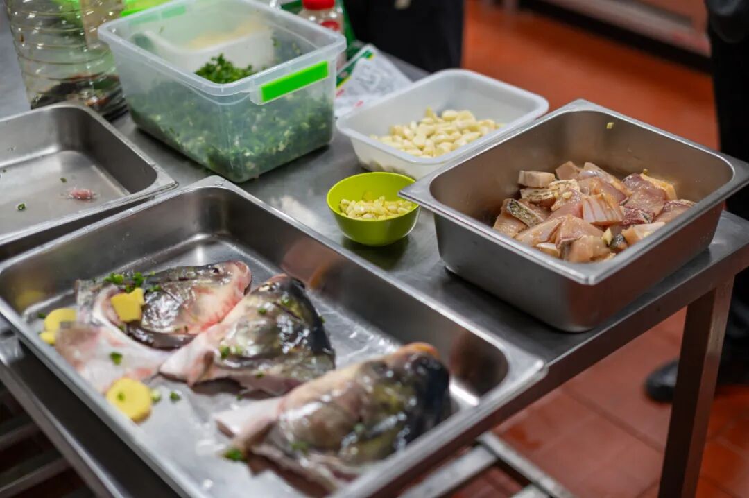 捕鱼节结束后,食堂厨师团队将新鲜渔获烹制成葱油鱼块、鱼头豆腐汤、剁椒鱼头等经典菜肴,香气四溢的“全鱼宴”向全校师生免费供应,让大家细品原汁原味的运河风味,共享丰收的喜悦。食堂也化身为师生美食创意的舞台。师生们各显身手,以鱼为核心食材,巧妙融入家乡特色风味,创新呈现出一道道“一鱼多味”的创意料理,既展现了精湛的厨艺,同时传递了对家乡味道的深情眷念。