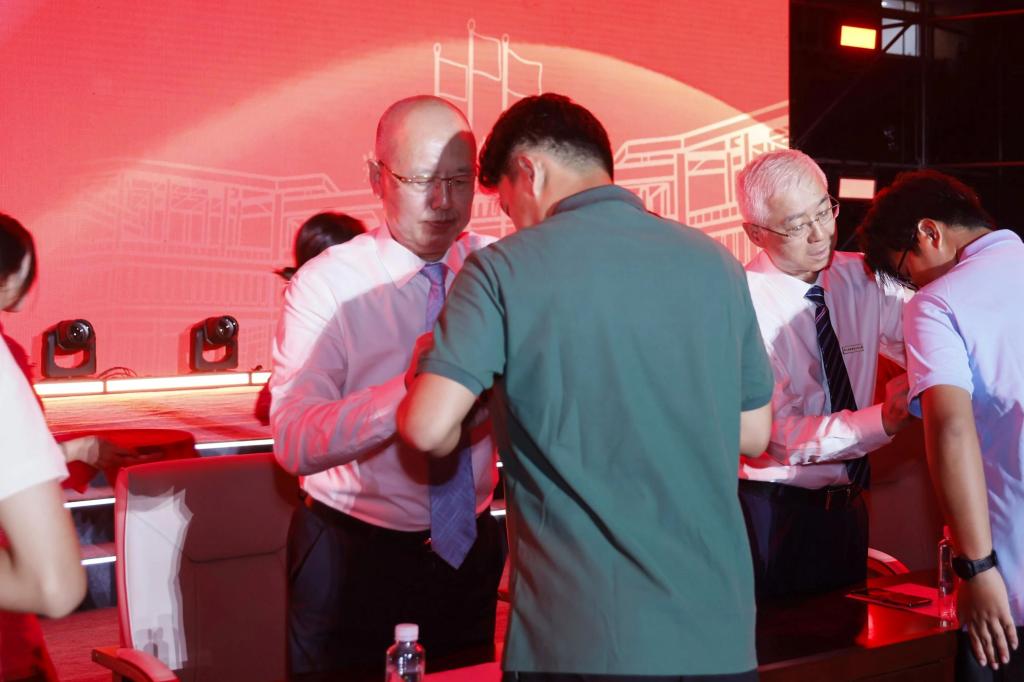 典礼上,校党委班子成员为新生代表佩戴校徽。这枚徽章,不仅代表着“机电人”的身份,更承载着机电大学“求实 求精 求新”的精神,承载着一代代机电人“勇立职教改革潮头,勇担服务发展使命”的荣光。