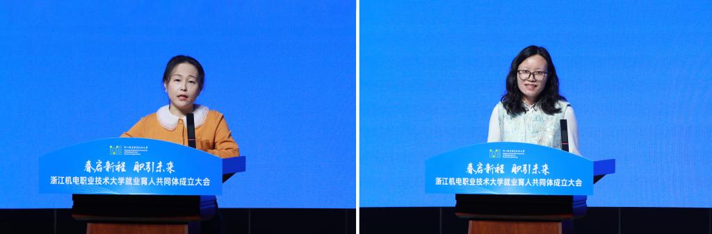 会上,浙江华瑞航空制造有限公司党总支委员、党群人力资源部部长陈蕊,杭州枫惠六和桥创投科技有限公司副总经理王春静分别作为成员单位代表与就业创业导师代表作主旨报告,围绕校企协同育人、以创促就等主题分享实践经验、交流工作思路,助力人才培养与就业创业深度融合,为共同体发展搭建更广阔的合作平台。