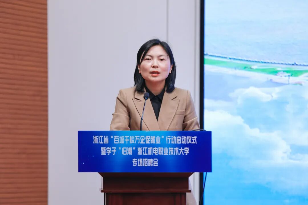 汤兆武对相关领导、来宾莅临学校表示热烈欢迎。他表示,浙江机电职业技术大学坚决贯彻落实中央、省委决策部署,始终坚守工科底色、厚植机电优势、服务制造强省,为浙江先进制造业发展提供坚实的人才支撑。结合学校发展与学子成长,他提出三点期望。一是以此次活动为纽带,共筑政校企协同就业新格局,携手打造浙江就业工作“金名片”;二是以智能制造为本色,共育服务新质生产力的时代工匠,为浙江制造业转型升级注入青春动能;三是以“归潮”行动为契机,共赴高质量就业创业新征程,推动青春理想融入国家发展和区域建设。