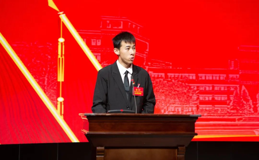 学校第二十七届学生会主席团成员胡维文同学向大会作题为《秉承机电传统·开辟创新通道·把握时代机遇,团结带领全校学生为全力争创高水平职业技术大学贡献青春力量》的报告。