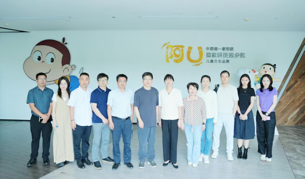 在杭州阿优文化科技公司,校方团队参观了企业动画科普制作中心,深入了解行业前沿技术应用场景。CEO马舒建、动画部总监晏立、编剧部总监江星宇等企业负责人与校方团队展开座谈。