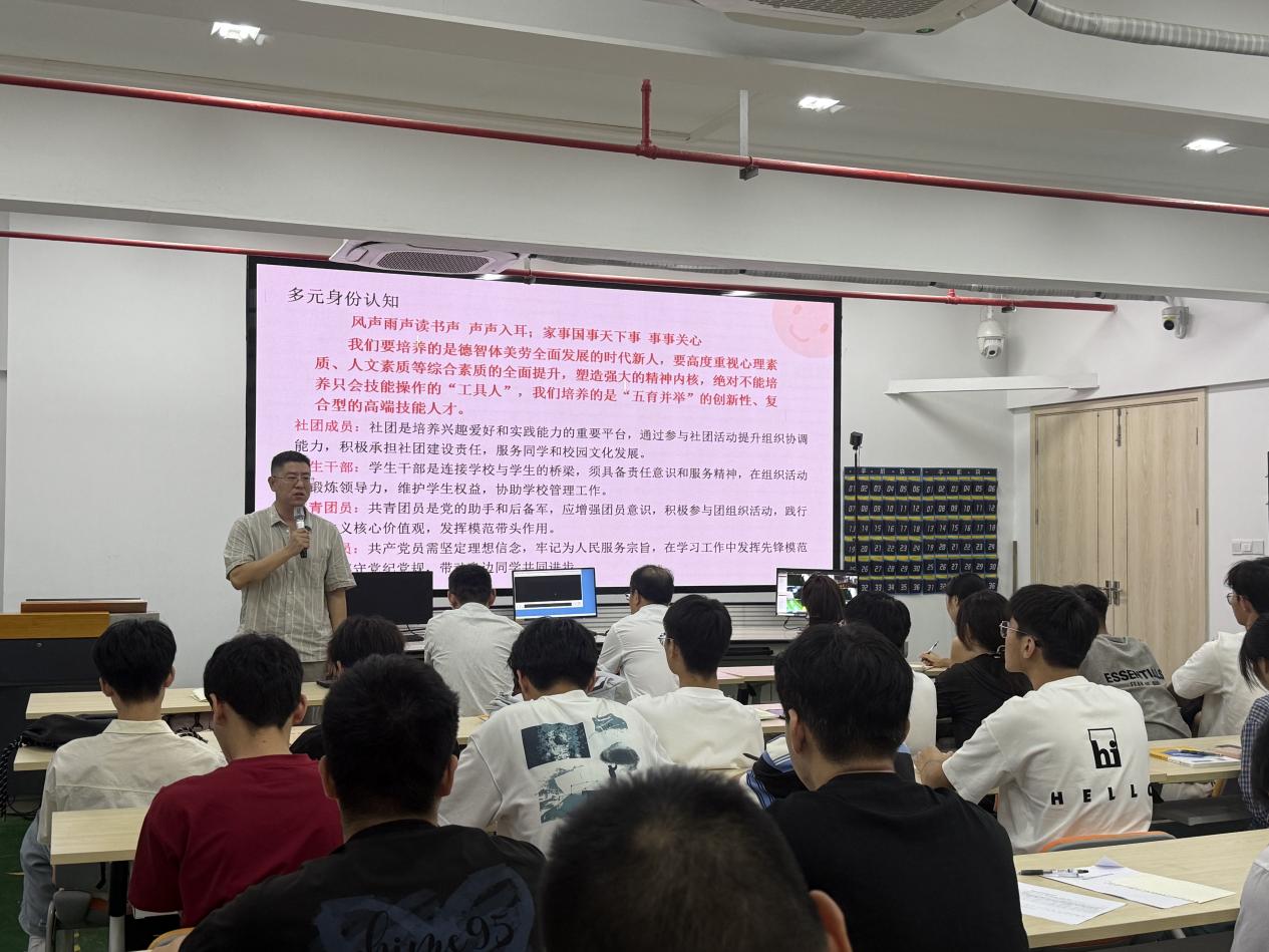 随后,罗鹏举强调了学生干部在学院发展和学生成长中的关键引领作用,要求大家找准定位,积极作为。罗鹏举还深入剖析了职业教育本科发展的新趋势与新机遇,鼓励同学们将个人成长目标与国家发展、行业需求紧密结合,做好科学的学业与职业规划,在新时代职教发展的浪潮中奋勇争先。