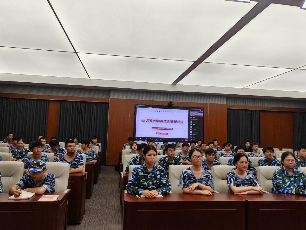 为深入贯彻中央八项规定精神学习教育,扎实推进清廉校园建设,帮助2025级新生筑牢廉洁思想根基、扣好人生“第一粒扣子”,9月25日晚,2025级新生“廉洁教育第一课”在五号楼2号厅如期举行,学校纪检监察室、学工部和滨江校区新生代表现场参会,其余新生通过线上直播同步收看,共同接受一场浸润心灵的廉洁思想洗礼。