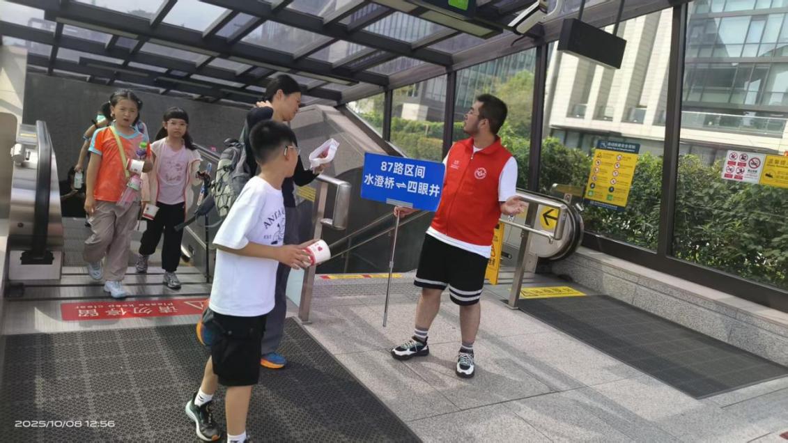 城控2571王祉芊同学说:“我的任务是引导乘客有序排队、解答线路疑问、并帮助行动不便的旅客。每一次耐心的解答,每一次及时的搀扶,换来的不仅是微笑与感谢,更是一种被需要的价值感。这个国庆,我未能回家,但我在小小的站台上,用自己的微光,照亮了他人的旅途。这次志愿服务的经历,让我深刻体会到“赠人玫瑰,手有余香”的真谛,这比任何风景都更让我感到充实和自豪。”