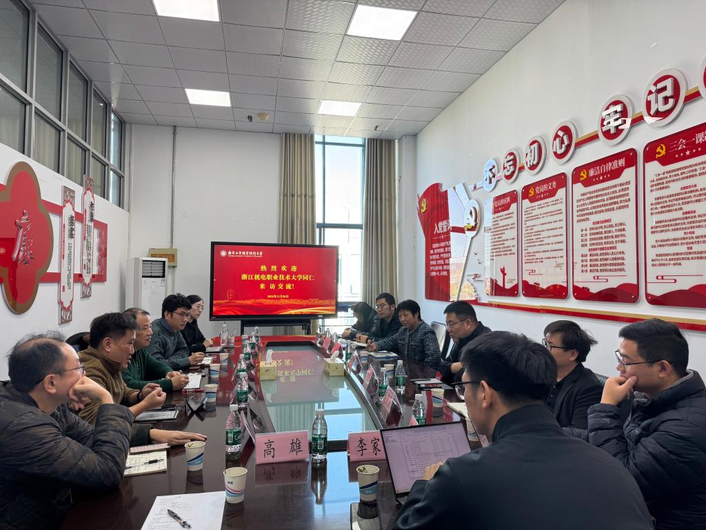 当日下午,调研团队赴南京交通职业技术学院继续交流。文爱民详细介绍了学校在专业建设方面的实践,特别是在城市轨道交通、汽车类专业建设等方向的政策把握、人才定位、课程认证与师资培养机制。马林才高度评价南京交院在专业布局与产业对接、“名师训练营”“青年教师培养营”等方面的做法,表示相关经验为我院结合浙江产业结构优化专业设置提供了有益借鉴。
