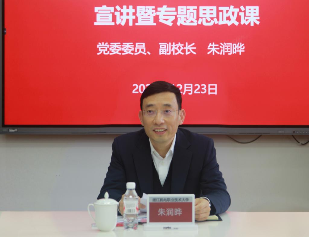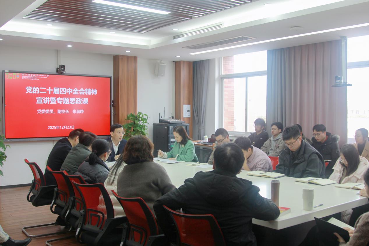 根据学校党委《关于学习宣传贯彻党的二十届四中全会精神的工作方案》,12月23日下午,学校党委委员、副校长朱润晔莅临国际教育学院,为学院领导班子、全体教职工及学生党员讲授了一堂兼具思想高度、理论深度与实践温度的专题党课暨思政课。
