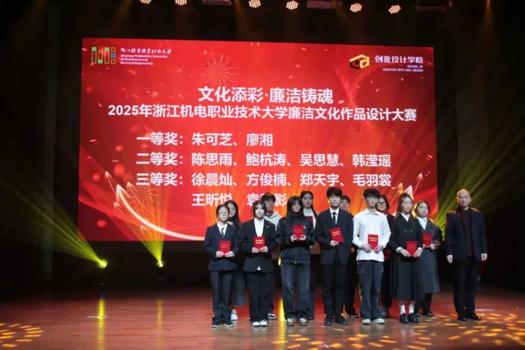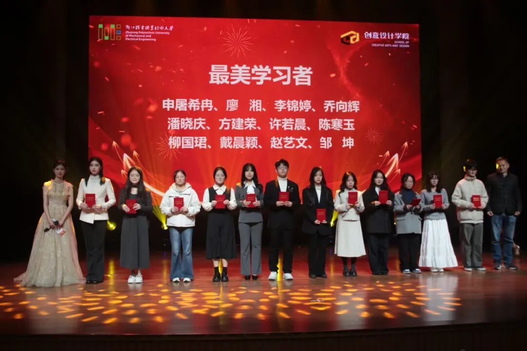高光所向,荣光所至。本次颁奖典礼延续了创意设计学院一贯坚持和倡导的育人文化,是聚焦“技术与艺术相融合,培养创新型高技术技能人才”的人才培养目标的体现。2025年各类奖项依次揭晓,涵盖“最美优秀学生干部”“最美班级”等6大类“最美”奖项,以及在省级乡村振兴与国家级“两山杯”赛事和校廉洁文化作品设计大赛中取得突出成绩的团队与个人。一张张证书,是肯定更是期许;一个个身影,是榜样更是力量。他们以行动诠释“艺路向阳”的精神,激励全体师生在新的一年里继续向前、向上。