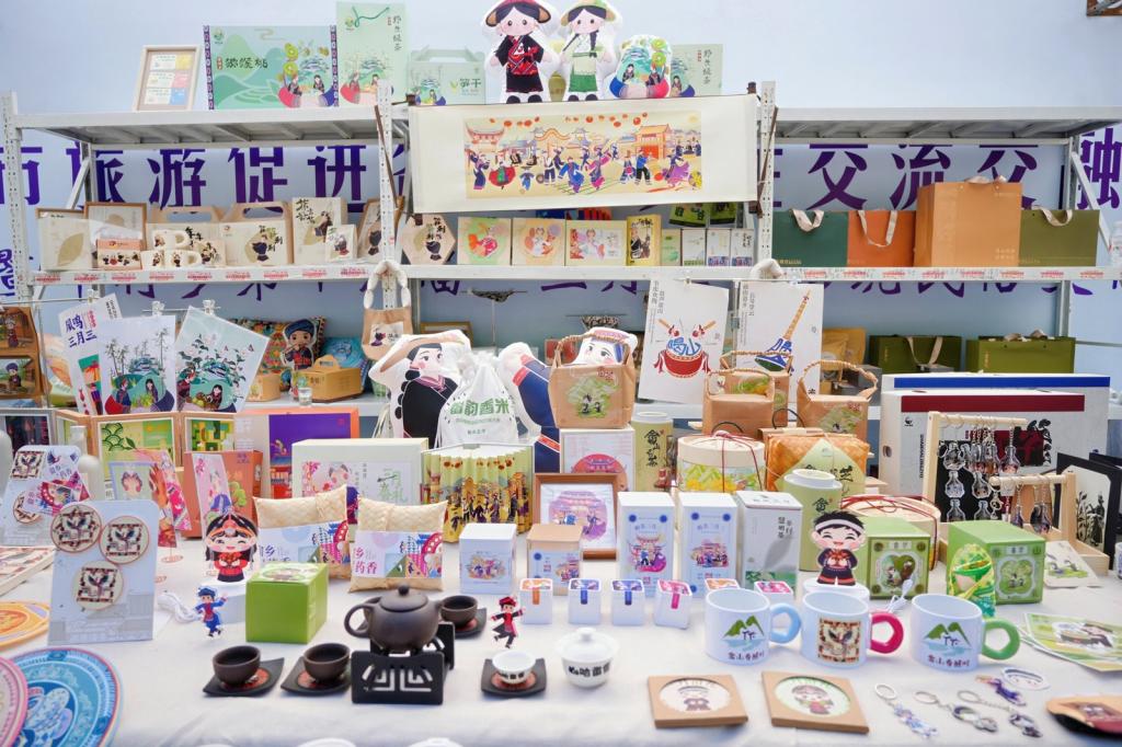 文化活动中展出的学院毕业设计作品,是学院主动对接帮扶乡镇现实需求,按照校地合作共建“石榴籽校地融合实践基地”的精神与要求,将专业设计与民族文化、乡村特色深度融合,精准把脉地方品牌建设与产业升级的痛点、难点,围绕高山茶叶、笋干、中药材、特色果蔬等举村乡优质农特产品,以及富有特色的畲族文化旅游资源,创作涵盖品牌形象系统升级、系列化包装设计、地域文化IP塑造、文旅推广视觉设计等40余个品类,为举村乡的特色农产品赋予了更高的市场辨识度与文化附加值,为其文旅融合发展注入了全新的创意活力,助力当地文化IP打造与产业增收。