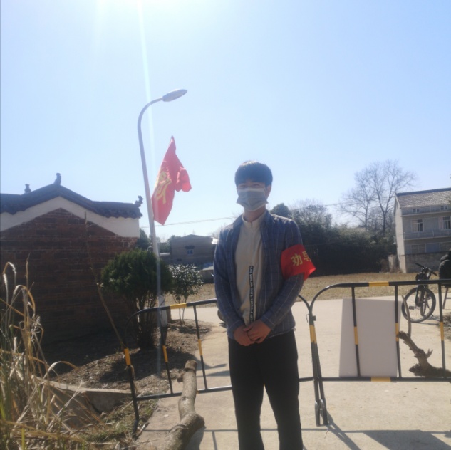 这个年关,新型冠状病毒肆意横行,全国陷入困境,作为为一名大学生、一名共青团员,我们应该主动学习了解事情的发展程度和防护措施,并劝导周围人做好防范,延期开学,在家里等待的我看到了村委会发出的疫情防控志愿者招募通知,我当即决定报名,为家乡做一点事情。——模具1801王伟铖