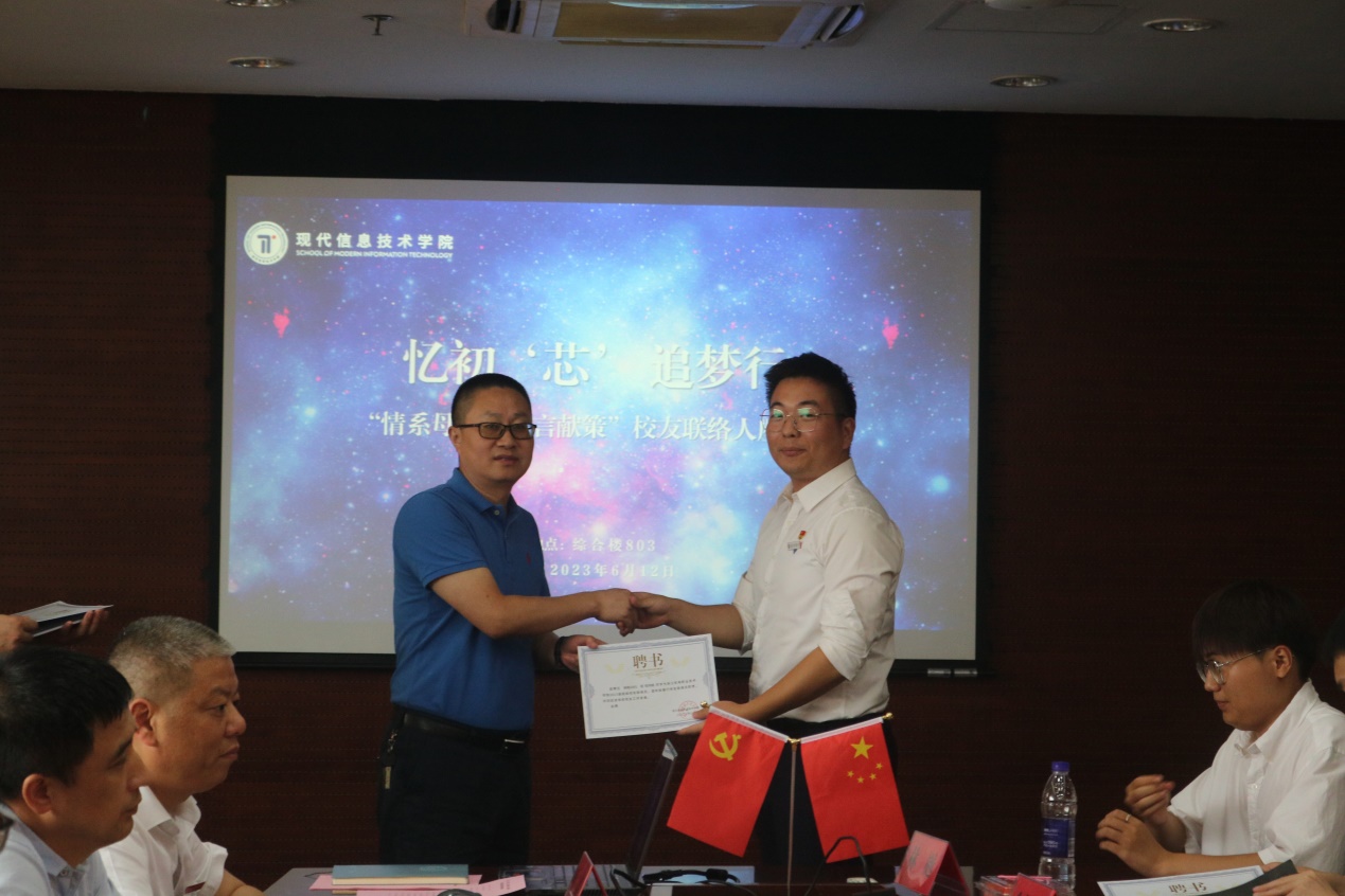 凝心聚力,共促发展。学院举办2023届毕业生校友联络人座谈会,校友们对学院发展、教育教学、学生管理与服务工作建言献策。学院领导班子、教研室主任、辅导员们认真听取建议并记录。会上,学院第二十一届团总支学生会向学院赠送了书法作品,祝福母校越来越好,院长卢涤非代表学院接收赠礼并表示感谢。校友联络人受聘仪式上,党总支书记张荣路为各毕业班校友联络人颁发聘书。