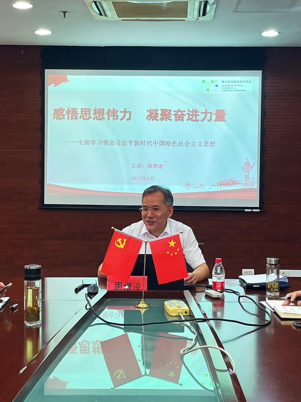 为深入推进学习贯彻习近平新时代中国特色社会主义思想主题教育走深走实,推动党员教师在主题教育中感悟思想伟力、凝聚奋进力量,6月14日,校党委副书记周增逵深入现代信息技术学院教工党支部讲授主题教育专题党课。