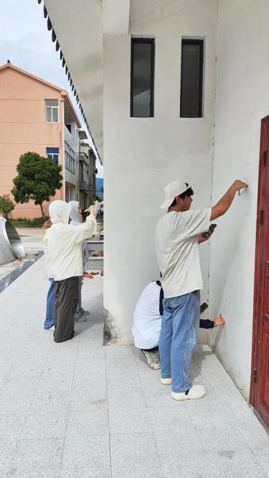 为深入学习宣传贯彻习近平新时代中国特色社会主义思想,贯彻 落实习近平总书记关于青年工作的重要思想,引导和帮助广大学生上 好与现实相结合的“大思政课”,在社会课堂中受教育、长才干、作 贡献。6月29日-7月4日,创意设计学院“助力美丽浙江,彩绘魅力古渊”暑期社会实践队深入东阳市巍山镇古渊头村,开展听党课、调研企业、彩绘古渊等系列活动,在社会实践过程中助力美丽浙江建设,推进乡村振兴,进一步坚定理想信念、厚植爱国情怀、锤炼高尚品德、矢志实学实干,把学习成效转化为奉献国家、服务人民实际行动。
