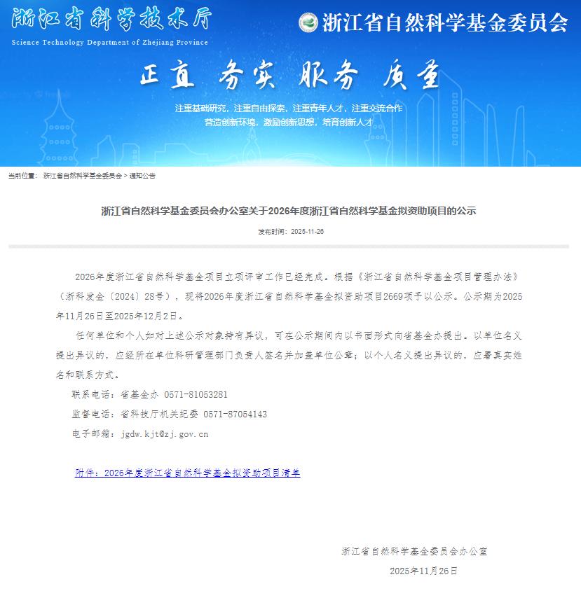 近日,浙江省自然科学基金委员会办公室公示了2026年度浙江省自然科学基金拟资助项目名单,我校公共基础教学部周云老师主持的《基于聚合物驻极体的非接触式柔性磁电体系的磁电效应研究》项目成功获批,这是我校在科学研究领域取得的又一重要突破。
