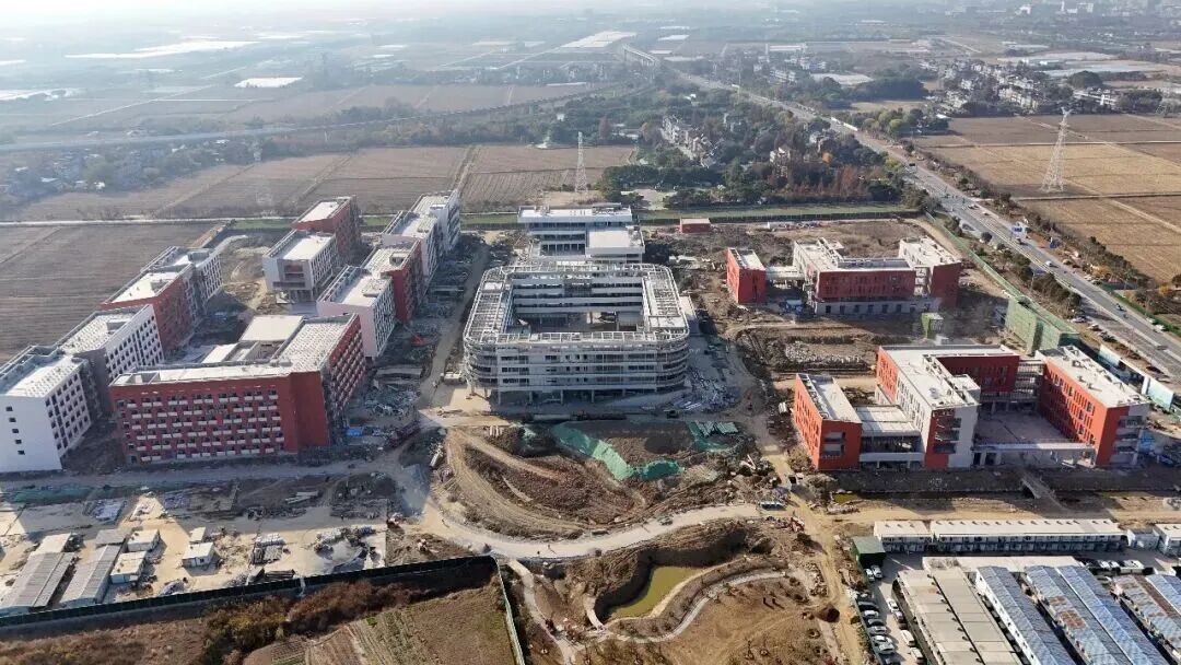 海宁校区二期项目位于长安镇仰山路西侧,于2024年9月开工,总占地面积约230亩,新建总建筑面积约8.89万平方米,涵盖教学楼、实训楼、食堂、宿舍楼及体育场地等,建成后可满足约5000名师生的教学、实训、住宿及科研培训需求。项目计划于2026年3月竣工验收,9月投入使用。