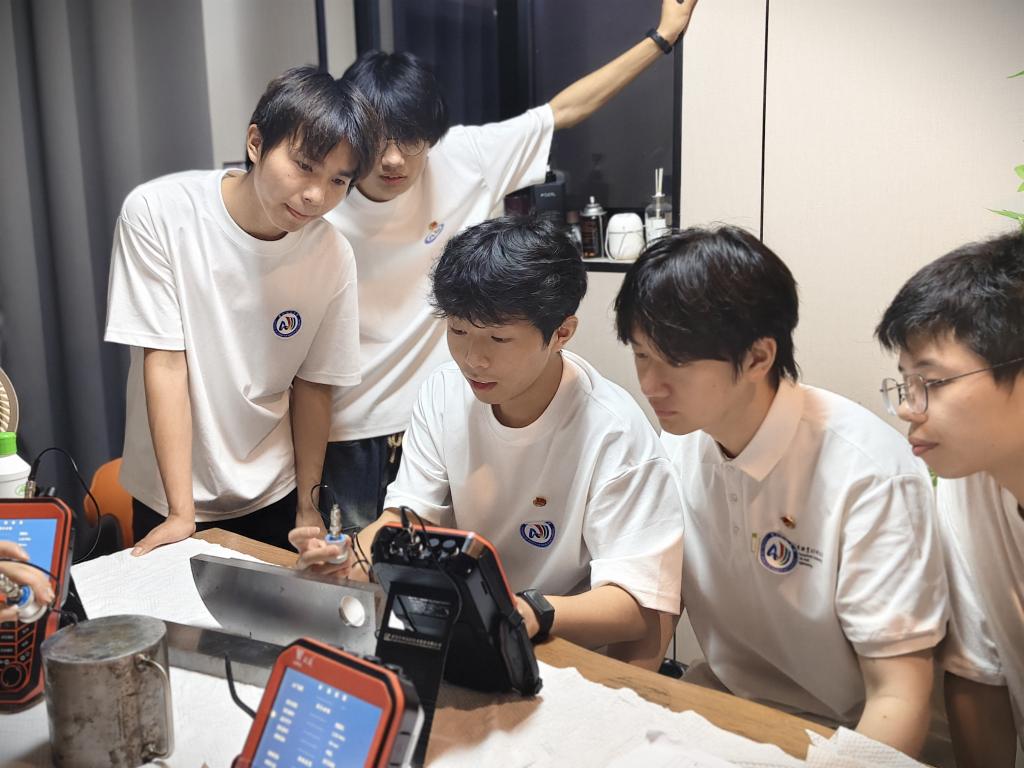 浙江机电职业技术大学学子赴大陈岛风力发电公司,使用超声波设备进行风力发电机塔身的检测工作,为企业提供技术支持。