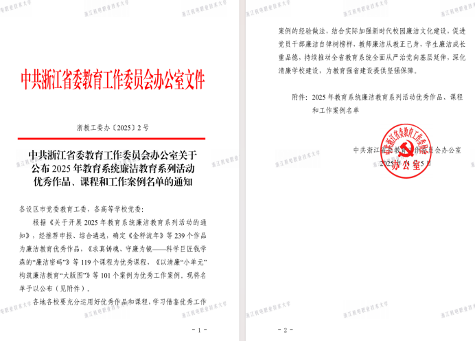 学校荣获浙江省机电集团第一批清廉建设...