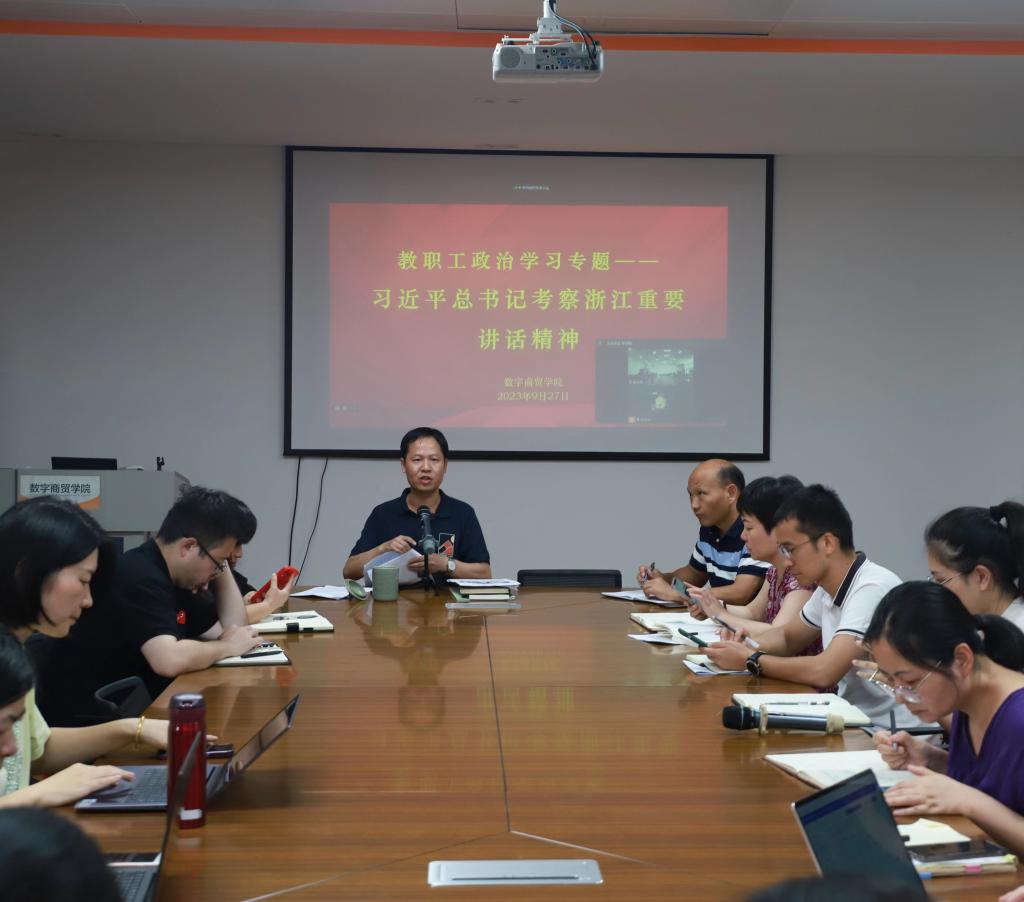 会议强调,大家要在学习和宣传上发挥模范带头作用,坚持把学习习近平总书记考察浙江时的重要讲话精神与主题教育结合起来,引导数字商贸学院教职工进一步用习近平总书记重要讲话精神统一思想、统一意志、统一行动,要加强党的全面领导和全面加强党的建设各项工作,深化开展主题教育,不断增强坚定捍卫“两个确立”,坚决做到“两个维护”,为勇当先行者、谱写商贸新篇章提供坚强保障。