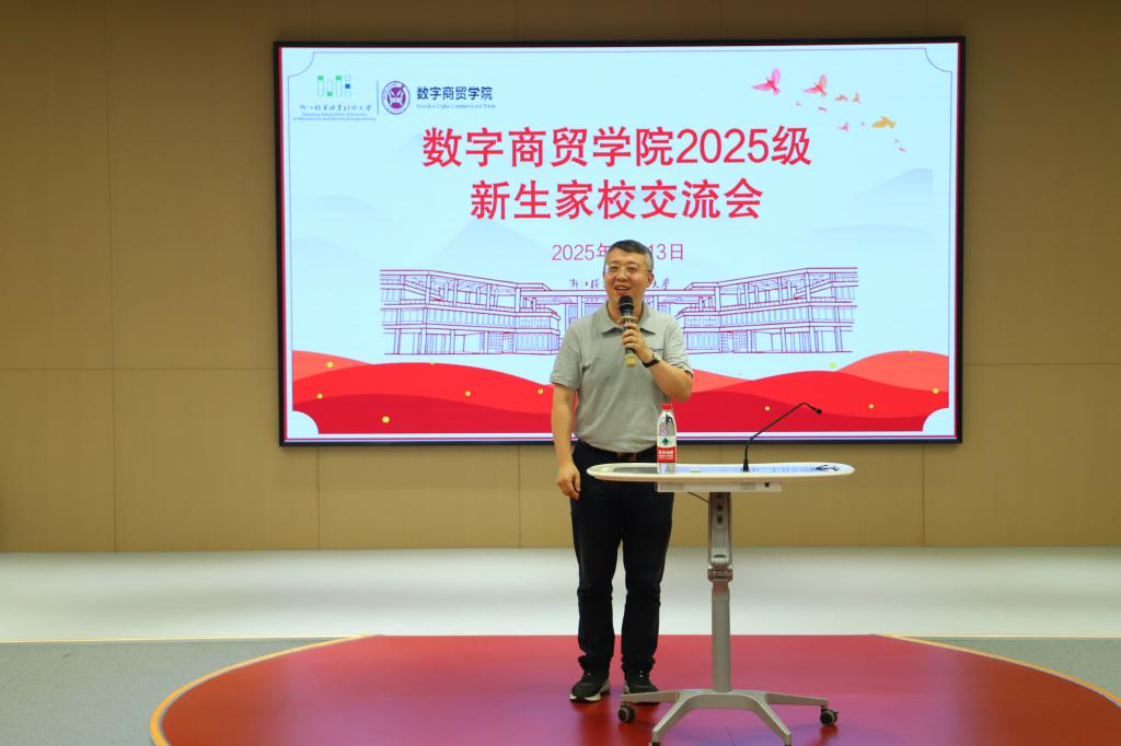 当日下午,学院2025级新生家校座谈会在19号楼举行,数字商贸学院党委副书记、院长姜洋,党委副书记(主持工作)钟毅,副院长王艺洁及学院相关教师参会,与新生家长和新生代表交流学习生活情况。