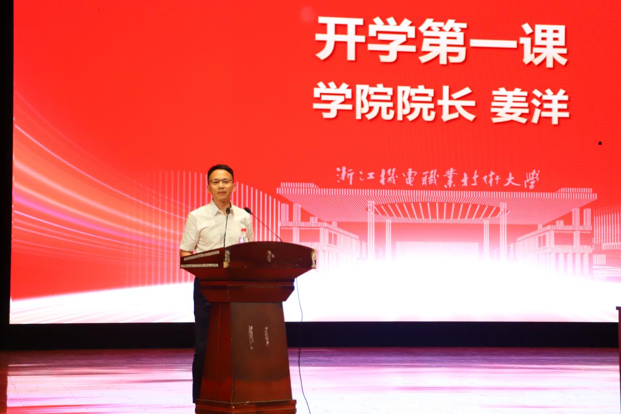 姜洋以《在数字浪潮中锚定价值,于机电沃土上铸就未来》为主题,为全体2025级新生带来“开学第一课”。他强调作为新时代大学生具备批判精神和创新思维的重要性。他希望新生在校期间锻造技术深度、商业广度、人文温度和学习长度四大能力,争做“既懂技术又懂管理”的数字商贸人才。