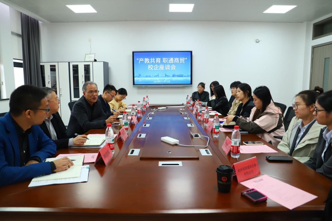 2025年11月12日下午,数字商贸学院抓住学校秋季校园招聘会的契机,在21号楼307会议室成功举办“产教共育 职通商贸”校企座谈会。会议由学院精心组织,旨在进一步深化产教融合,推动校企合作,共同培养高素质商贸类人才。周增逵副校长出席并讲话,数字商贸学院领导班子成员及相关负责人共同参会。