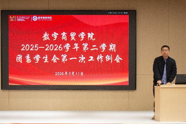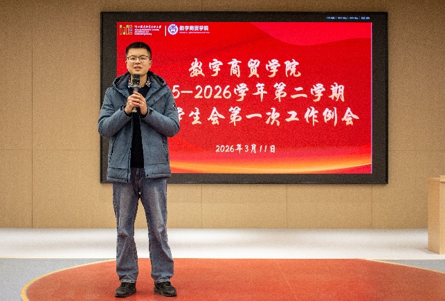 3月11日下午,数字商贸学院团委学生会在19号楼106教室召开新学期第一次工作例会,明确我院团委学生会本学期工作核心方向与重点任务,使工作流程更加清晰,提高工作效率,为各项活动的顺利开展指明方向。学院党委副书记林佳辉、全体辅导员受邀出席,第20届团委学生会全体成员及25级干事共同参会,会议由章行老师主持。
