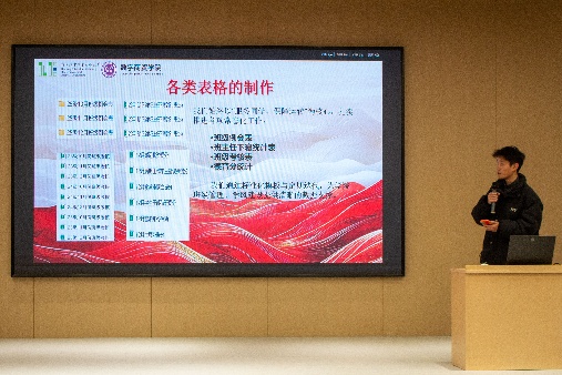 最后,党委副书记林佳辉作总结发言。他充分肯定了团委学生会上学期在服务同学、助力学院校园文化建设等方面的努力与付出,同时林书记也对全体学生骨干提出殷切要求:一要旗帜鲜明讲政治,做政治上的明白人,坚守初心使命;二要严于律己,主动倾听同学心声,当好同学与学院之间的沟通桥梁;三要创新工作思路,贴合学生喜好谋划活动,提升活动吸引力与参与度,引导更多同学走出寝室、投身校园活动;四要严守规矩、严于律己,做学生中的标杆,秉持公平、公正、公开原则开展工作,树立学生骨干良好形象。
