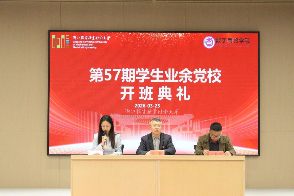钟毅作动员讲话,他围绕本次春季班学习重点任务提出了具体要求。他指出,全体党校学员要做到学有所思,系统学习党的创新理论,立足专业涵养工匠精神,在数字经济与现代商贸流通体系建设中找准定位;要思有所悟,结合浙江改革实践与学校产教融合举措,在学思践悟中坚定信念、端正入党动机;要悟有所行,坚持知行合一,以扎实学业、志愿服务与社会实践锤炼本领,争做复合型数字商贸人才,以实干担当书写青春华章。