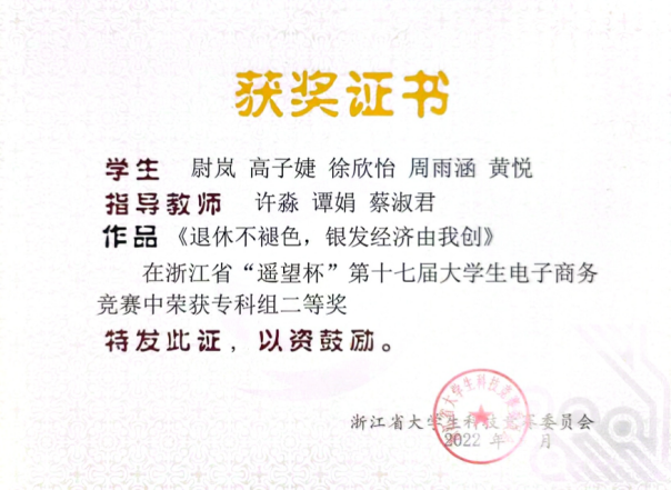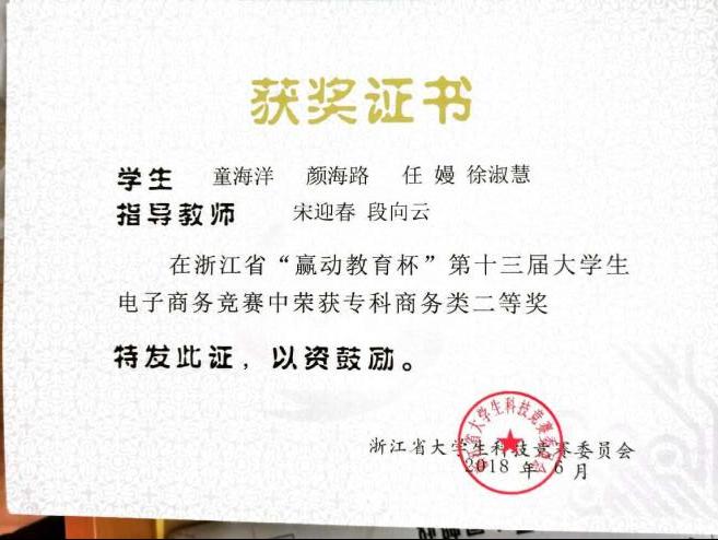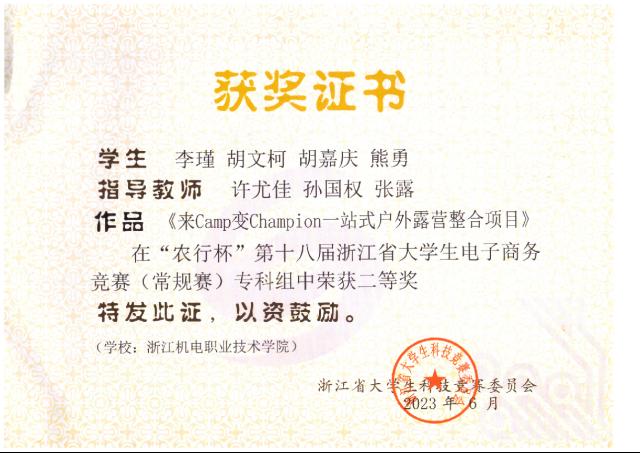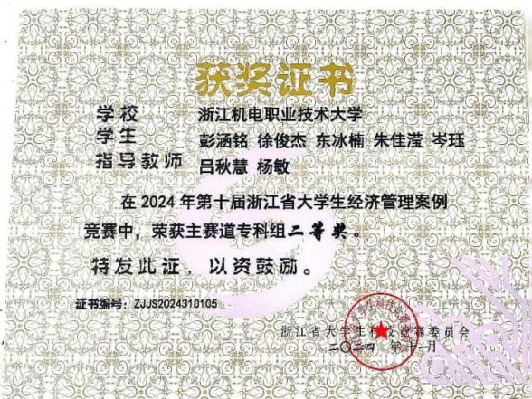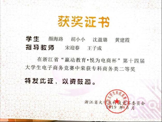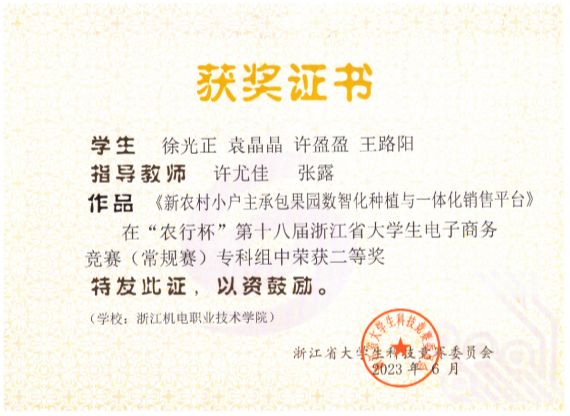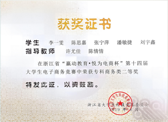 学生团队近年曾获得国际大学生创新大赛国家级金奖、“挑战杯”中国大学生创业计划竞赛国家级银奖、全国高等院校数智人力大赛国家级一等奖,在浙江省大学生电子商务竞赛、经济管理案例竞赛等省级竞赛中获得二等奖以上20余项, 更有电商学子在2024年荣获“浙江省技术能手”这一权威荣誉称号。