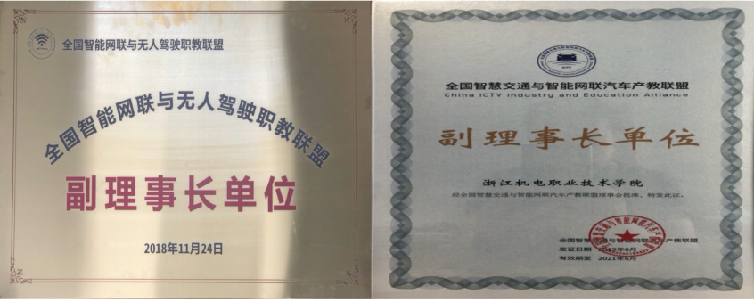专业是全国智能网联与无人驾驶职教联盟副理事长单位、全国智慧交通与智能网联汽车产教联盟副理事长单位、全国新能源汽车产教联盟副理事长单位、全国智能网联汽车产业产教融合共同体副理事长单位、浙江省汽车职业教育协作组副组长单位,在国内同行中具有突出的优势与影响力。