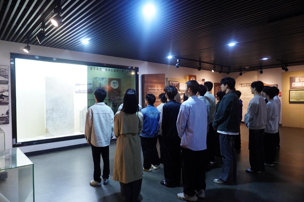 仪式结束后,学员们怀着崇敬的心情瞻仰烈士纪念碑。他们仔细阅读碑文上记载的先烈事迹,那些用热血和生命铸就的壮丽篇章,仿佛在眼前一一浮现。走进纪念馆,馆内陈列的泛黄照片、斑驳实物以及感人至深的故事,如同一幅波澜壮阔的历史画卷,徐徐展开在学员们面前。革命先烈们为了民族独立和人民解放,不惜抛头颅、洒热血,在枪林弹雨中奋勇前行,在艰难困苦中坚守信仰。学员们驻足凝视,沉浸在历史的回忆中,在英烈名录前,他们轻声念诵着一个个熟悉而又陌生的名字,感受着那份沉甸甸的牺牲与奉献;在留言簿上,他们郑重地写下自己的感悟与决心,不少同学更是热泪盈眶,深刻体悟到“共产党员”这一称号背后所承载的千钧重任。
