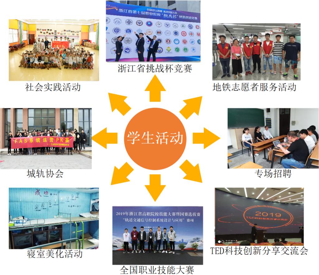 本专业创新省际交换生等多途径校企协同育人模式,学生不仅在各类职业技能竞赛中率获佳绩,同时毕业班学生在杭州地铁、杭港地铁、宁波地铁、杭州中车车辆有限公司、机电设计院等单位的培训实习中,均获得企业广泛好评。