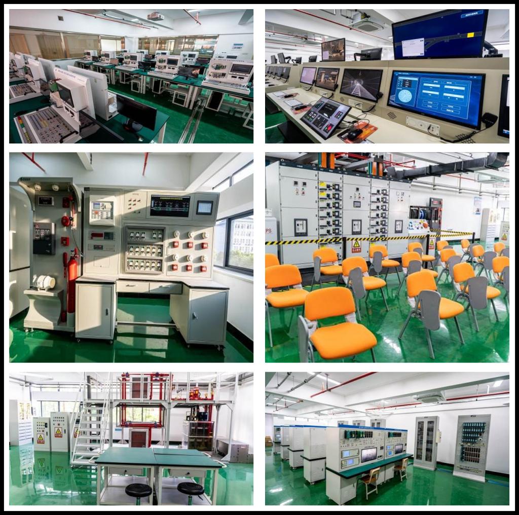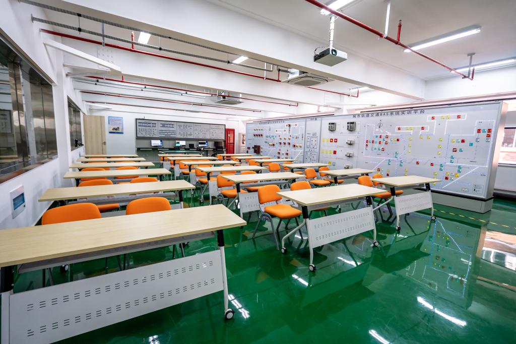 目前,学校已完成6层轨道交通综合实训基地建设,一期价值近3千万的实训设备已完成招投标采购工作,现已安装调试完毕。二期、三期共计近亿元的专业设备系统将陆续进驻基地。实训基地包含常用车站机电系统、信号控制系统、供配电系统、车辆技术等10个深度维检修实训区和轨道交通职业素养培训区,以及遵照“中心级——车站级——现场级”两级管理三级控制的模式构建仿真线网及车站管理的机电及信号系统综合实训区,不仅满足本专业课程体系教学实训需求,还可全面对接国内轨道交通行业的各类综合性教学实训及岗位技能培训、省内及全国轨道交通运营企业开展在岗员工的初中高级职业资格培训、面向全国轨道交通院校开展的师资培训等任务。