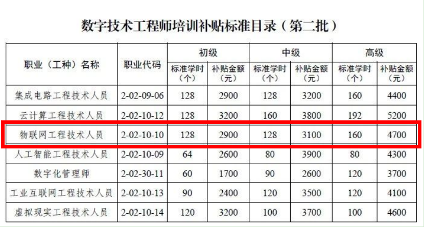 根据人社部《国家职业技术技能标准 职业编码:2-02-10-10——物联网工程技术人员》,物联网工程技术人员职业分为初级、中级、高级三个等级。此次培训等级为初级,面向从事物联网架构、平台、芯片、传感器、智能标签等技术的研究和开发,以及物联网工程的设计、测试、维护、管理和服务的工程技术人员。