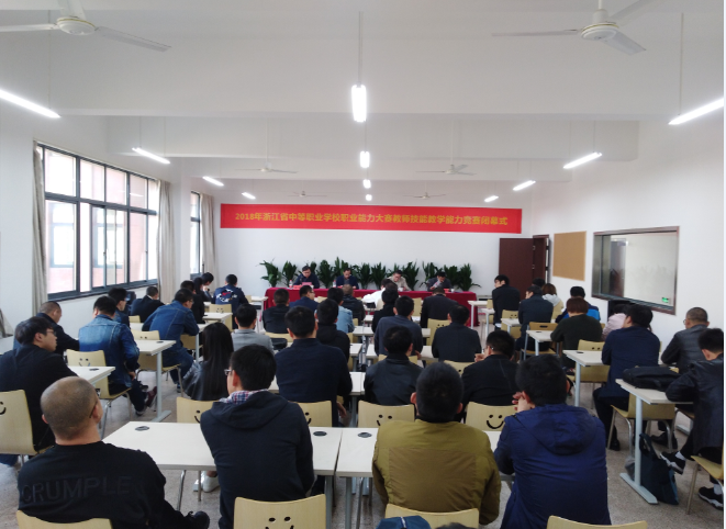 浙江省中等职业学校职业能力大赛,是我省全面贯彻全国和全省职业教育工作会议精神,深入推进中职课程改革,深化校企合作产教融合,提高师生职业能力水平的一项综合性赛事,包括中职学校学生技术技能大赛、文明风采大赛、创新创业大赛和教师教学技能比赛、职业素养比赛等赛项。今年我院承办了学生技术技能类、“面向人人”和教师技能教学能力三个类别竞赛共10个赛项,439名选手参加竞赛。刚刚结束的教师技能教学能力竞赛“车加工术”和“电子电工专业”两个赛项,我院赛前精心组织、制定科学方案,通过对参赛教师的理论知识、教学项目设计展示与答辩、实践操作三个环节的比赛,共38名教师分别获得对应赛项的一、二、三等奖,省教育厅职成教教研室崔陵主任宣读获奖名单。