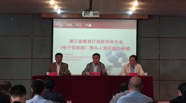 10月13日,浙江省教育厅主办,浙江省高师培训中心、浙江机电职业技术学院联合承办的浙江省高校学科专业(电子信息类)带头人领军能力研修专题培训在机电学院滨江校区举行。本次培训从专业发展理念、专业与课程建设能力、教学科研能力、教学团队建设能力、产教融合能力入手,旨在拓展学科(专业)带头人的职业教育理论视野,提升其新技术、新产业、新业态、新模式背景下的专业建设水平,明确专业建设路径,提高其专业教学团队的组织管理水平,增强专业竞争力,更好地服务我省经济社会发展和产业转型升级。培训形式注重理论与实践相结合,在邀请诸多教育大家作主题报告之外,秉着热点交锋、思维激荡、拓宽视野、求实创新的宗旨,分阶段展开经验分享、专题研讨、实地调研等环节。来自浙江师范大学、杭州师范大学、浙江树人大学在内的14所高校及金华职业技术学院、浙江金融职业学院等25所省内兄弟院校共计电子信息类54名学科专业带头人参加培训。